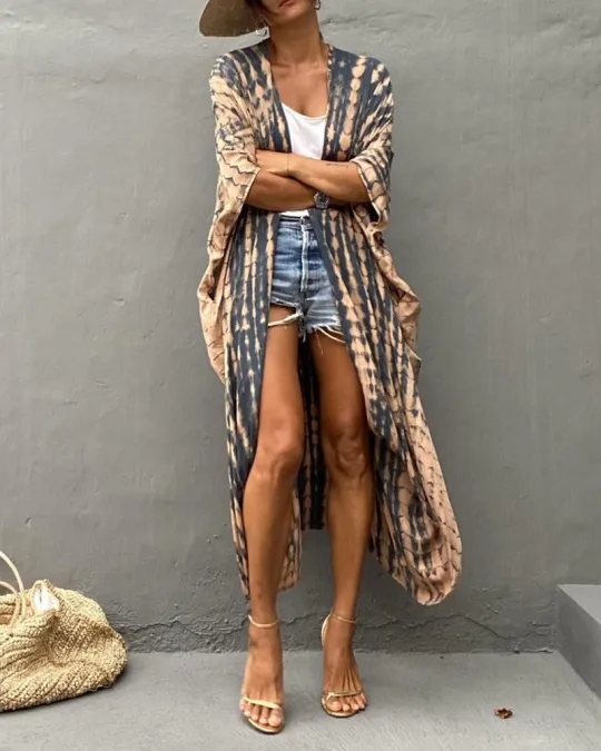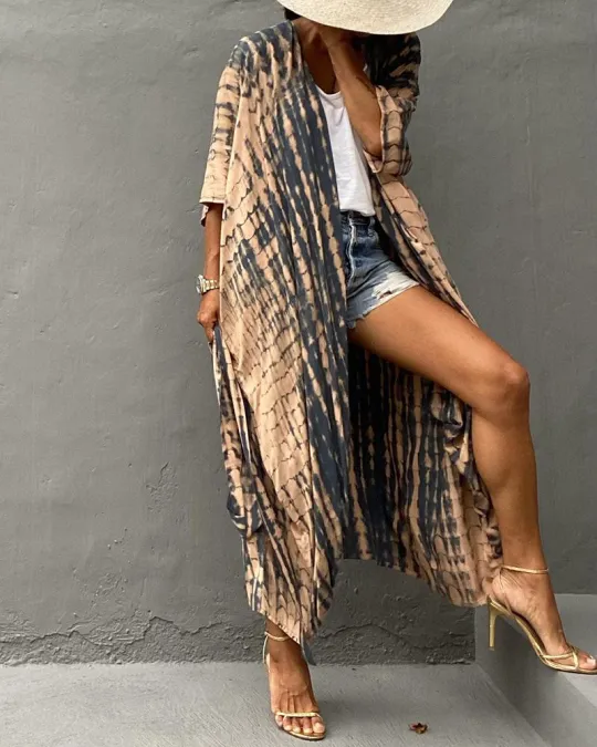 Be the first to review “Tie-Dye Print Pocket Front Irregular Hem Long Kimono Coat” Cancel reply
